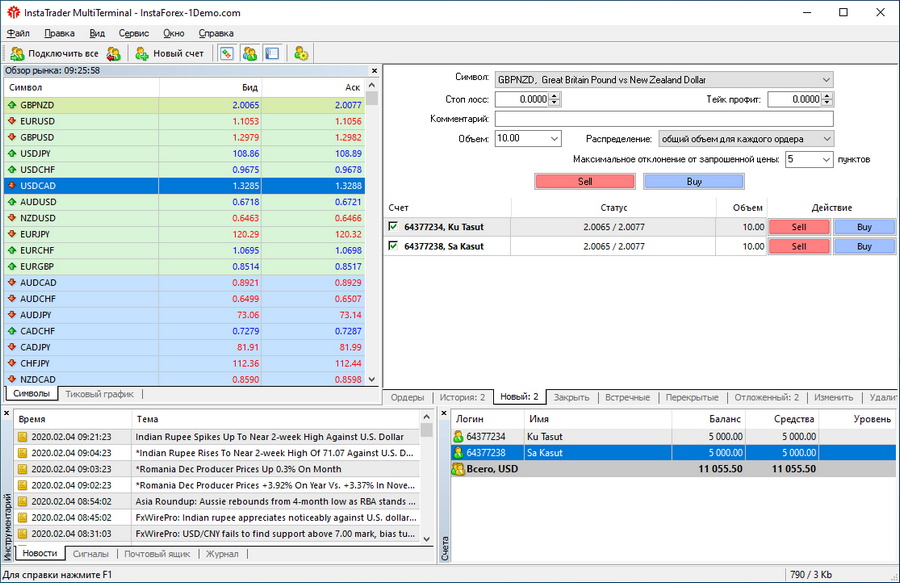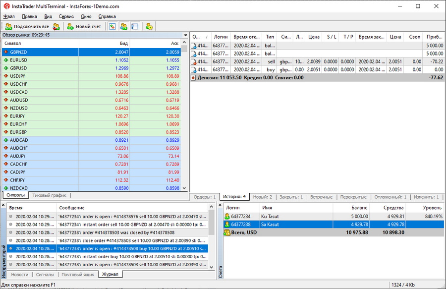Мультитерминал – это компонент торговой площадки MetaTrader, который дает возможность осуществлять трейдинг на нескольких аккаунтах одновременно. Интерфейс Мультитерминала практически аналогичен функционалу платформы MetaTrader, с той лишь разницей, что первый отображает и позволяет управлять сразу несколькими счетами, а не одним. При этом по каждому аккаунту можно открывать и закрывать позиции в разном или одинаковом объеме.