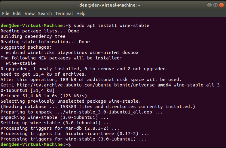 If your Ubuntu version does not provide a repository and you get an error during Wine installation, run the following commands one by one: